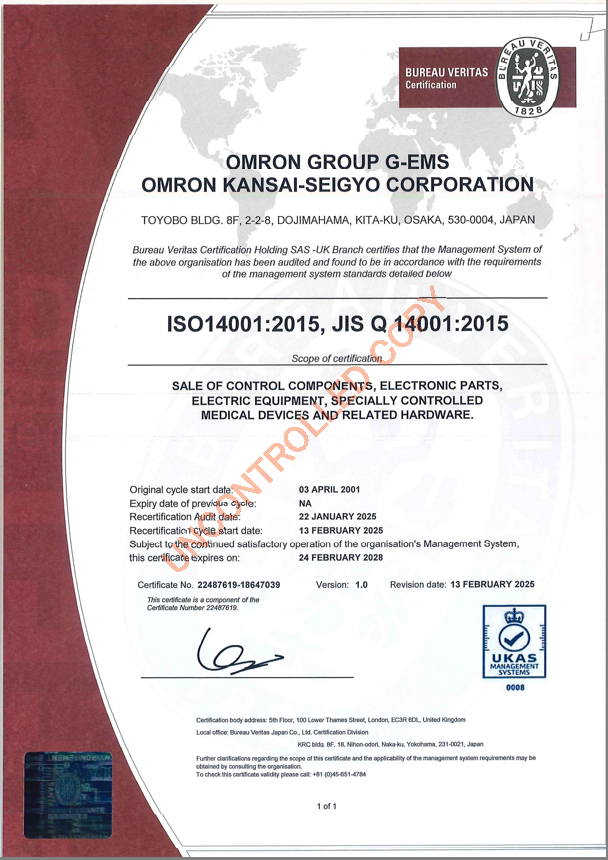 オムロンは、将来世代を含めた人類の健康で文化的な活動機会を守っていくため、「汚染の予防」、 「適正な化学物質の管理」、「水資源の有効活用」、「生物多様性の保全」、「持続可能性に配慮した 責任ある調達」などにより自然との共生に取り組みます。